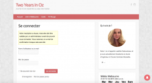 Ce site contient un contenu privé qui est destiné à ma famille et mes amis. Si tu en fais partie et souhaite suivre mes aventures “down under”, inscris-toi !